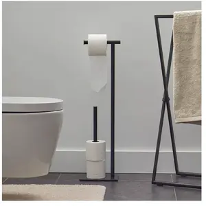 Op zoek naar een praktische oplossing voor het toilet of de badkamer, waarbij boren of lijmen niet nodig is? Deze vrijstaande toiletrolhouder heeft tevens plek voor het opbergen van reserverollen.