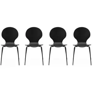 Lot de 4 chaises noires rétro empilables - SWEEEK - Naomi - Bois d'hévéa et contreplaqué - Pieds en acier