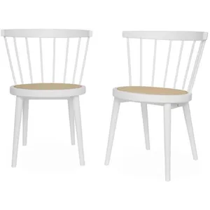 Lot de 2 chaises blanches en bois et cannage. Nora. L 54 x P 54 x H 76.5cm.