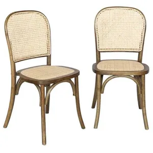 SWEEEK Lot de deux chaises vintage en bois marron vieilli avec assise et dossier en rotin