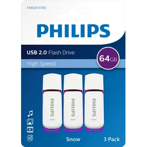 Philips USB Flash Drive - Eenvoudig te gebruiken via Plug & Play! Trendy USB-stick dankzij kleurrijk ontwerp• Kies uw eigen trendy kleur, zoals kanariegeel, gelatineroze, ultravioletpaars, absintgroen, elektrisch blauw of warm oranje, en beleef nog meer plezier aan het dagelijks opslaan en delen van uw gegevens Eenvoudig te openen en gebruiksvriendelijke verpakking• De markeringen en perforatie op de verpakking geven aan hoe u de verpakking het best kunt openen en u uw USB-stick gemakkelijk eruit kunt halen. Snelle gegevensoverdracht met high-speed USB 2.0• Als u grote multimediabestanden kopieert van of naar de harde schijf van uw computer, vermindert een gegevensoverdracht met hoge snelheid de vervelende wachttijd aanzienlijk. De activiteitsindicator gaat branden als er bestanden worden gekopieerd• Een aangename gloed betekent dat de drive op juiste wijze is aangesloten en werkt. Het licht pulseert sneller bij het kopiëren van of naar het geheugen. 64 GB aan opslagcapaciteit voor grote gegevensbestanden• Dankzij de 64 GB hebt u de mogelijkheid om grotere of meerdere bestanden via de USB-poort van uw PC of laptop uit te wisselen en te delen. Beschermende kap die voor uw gemak geïntegreerd is• Verlies nooit meer de kap van uw USB-stick! De beschermende kap is geïntegreerd inhet productontwerp, waardoor deze altijd op de USB-stick bevestigd blijft. Om deze Plug & Play USB-stick te gebruiken, draait u de kap naar achteren en sluit u de stick aan. Kenmerken Philips USB 2.0 64 GB 3-pack Snow Edition Purple/ white Dopje Led