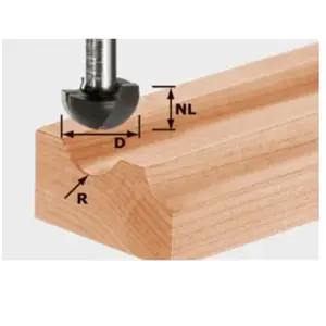 Zwaartepunten voor de toepassingen Festool biedt bij elke halfrondprofielfrees een afrondprofielfrees met gelijke radius Holprofielfrezen en radiusfrezen kunnen ideaal met elkaar worden gecombineerd, bijv. als profiel en tegenprofiel Leveringsomvang: Blister-verpakking Technische gegevens D: 19,4 millimeter R: 9,7 millimeter Schacht Ø: 8 millimeter GL: 41 millimeter NL: 11 millimeter