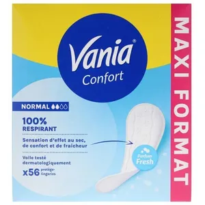 Vania | Protège-Slips Confort Normal Parfum Fresh (boîte de 56 pièces) Protège-lingeries 100% respirant et confortables Protection hygiénique avec ajustement parfait et tenue optimale