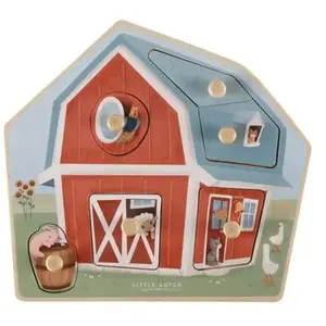 Houten puzzels zijn zo leuk! Ze gaan ook nog eens lang mee. Deze in de vorm van een schuur is ideaal voor de boerderij fans. Zorg er samen met je kindje voor dat alle puzzelstukjes in elkaar passen. De puzzel bevat 6 stukjes. Vanaf 12 maanden. Little Farm Leer de boerderij op een speelse wijze kennen! De Little Dutch Little Farm collectie bestaat uit speelgoed in een boerderijthema. Alle dieren die daar rondlopen kom je tegen, zoals een kip, koe en kuikentjes. Maar ook een tractor en een stal. Kortom, alles wat met de boerderij te maken heeft! Kies uit speelgoed gemaakt van zacht pluche of mooie houten items. Met het speelgoed uit deze schattige collectie raakt je kindje niet uitgespeeld.