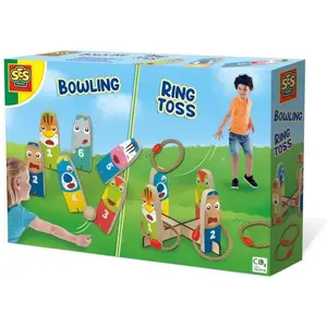 Twee Spellen in Één: Bowlen en Ringgooien! Met deze vrolijke beestenboel kun je maar liefst twee spellen spelen! Zet de kleurrijke dieren in een bowlingopstelling en probeer ze in één keer omver te werpen met de bal. Of gebruik het meegeleverde frame en maak er een ringwerpopstelling van. Wie weet de meeste ringen om de dieren te werpen? Dit 2-in-1 spel biedt eindeloos speelplezier, zowel binnen als buiten! Inhoud van de verpakking: 6 Bowling- en ringwerpkegels 1 Houten bal (Ø40mm) Houten frame voor ringwerpen 4 Touwringen Bewaartas van textiel Instructies Unieke Eigenschappen: 2-in-1 spellen: Bowlen en Ringgooien Echt houten onderdelen voor duurzaamheid Stevige touwringen voor langdurig gebruik Vrolijk geïllustreerde kegels voor extra speelplezier Handige bewaartas om het spel overal mee naartoe te nemen Dubbel Zo Veel Plezier! Dit spel is ideaal voor kinderen vanaf 4 jaar en biedt volop mogelijkheden voor actief spel. Of je nu binnen speelt of buiten, met dit 2-in-1 spel hoef je je nooit te vervelen! Pak de Bal of Ringen en Begin! Met Bowlen en Ringgooien van SES Creative heb je altijd een leuk spel bij de hand. Nodig je vrienden of familie uit en zie wie de meeste kegels omver kan werpen of de meeste ringen kan gooien!