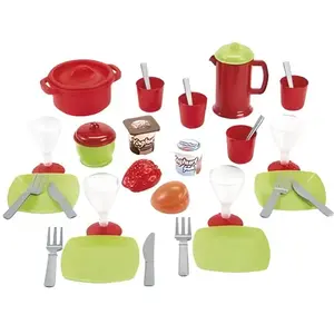 Deze keukenset met meerdere elementen is een grote attractie voor kinderen en een geweldige aanvulling op keukensets. Het is een must-have voor elke kleine huisvrouw. Uw kind kan een smakelijke maaltijd bereiden voor hun teddyberen of poppen, en zelfs een feestje voorbereiden voor een ontmoeting met vrienden. Dit is een geweldig voorstel voor geweldige, lange uren plezier. Het kind stimuleert verbeeldingskracht en creativiteit , maar ontwikkelt ook het vermogen om in de samenleving te functioneren. Kenmerken: - De set bevat : kopjes, borden, groenten, bestek, potten en anderen. - Allemaal gemaakt in levendige, realistische kleuren, versierd met fruitmotieven. - De set bevat 36 elementen. - Gemaakt van niet-giftig materiaal. - veilige kit voor een kind.