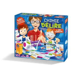 Jette le dé, pioche une carte et réussis l'expérience pour gagner! Un jeu de plateau familial avec des expériences de chimie! Plus de 450 épreuves. Contient les accessoires nécessaires pour réaliser les expériences : lunettes de protection, tubes à essai avec bouchon, papier PH, bicarbonate de soude, pince, bobine de fil, ballons, seringue, entonnoir, pailles, gobelets... En-tête / Fabricant=Buki;Cedemo / Capacités développées=Exploration;Cedemo / Catégories=Jeux de plateau;Type de Produit=Jeux de réflexion et connaissance;Cedemo / Capacités développées=Partage;Dimensions et poids / Largeur=380;Cedemo / Catégories=Sciences et Découvertes;Jeux de société / Catégorie 1=Jeux éducatifs;Dimensions et poids / Longueur=70;Cedemo / Couleur produit=Multicolore;Nombre de participants max=6;Cedemo / Certifications=CE;Enfants, Jeux et Jouets / A partir de=10;Dimensions et poids (emballé) / Hauteur emballée=370;Cedemo / Utilisation=Intérieure;Cedemo / Capacités développées=Curiosité;Dimensions et poids (emballé) / Largeur emballée=380;Enfants, jeux et jouets / Public=Premier âge;Titre=Sciences Chimie Délire;Dimensions et poids / Poids=1678;Cedemo / Capacités développées=Interaction;Tranche de poids=500 g à 3 kg;Cedemo / Gamme du produit=Sciences;Dimensions et poids (emballé) / Profondeur emballée=70;Cedemo / Capacités développées=Reflexion;Nombre de participants min=2;Jeux et jouets / Sexe=Adulte mixte;Matière dominante=Plastique;Cedemo / Capacités développées=Apprendre les sciences;Jeux et Jouets / A partir de=10;Cedemo / Capacités développées=Adresse;Jeux et jouets / Lieu de fabrication=Chine;Dimensions et poids / Hauteur=370;Cedemo / Saisonalité=Permanent