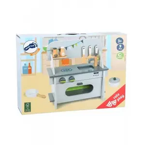 Het kookevenement kan beginnen! Deze compleet uitgeruste speelkeuken van 100% FSC-gecertificeerd hout heeft alles wat jonge koks nodig hebben om een feestmaal te bereiden. De oven is voorzien van een handige ovendeur. Op het fornuis staat een pan met afneembaar deksel te pruttelen en peper- en zoutvaatjes zorgen voor de nodige kruiden. Deze keuken is zonder gereedschap te monteren en te demonteren. Wie wil hier nou niet koken?