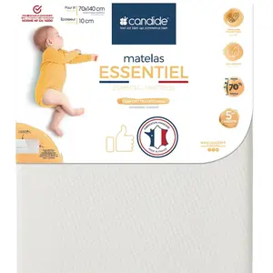 | Nom du produit | CANDIDE Matelas Bébé 70x140x10cm Essentiel - Sans Traitement - Déhoussable - Confort Traditionnel - Fabriqué En France - Garantie 5 Ans |