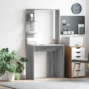 Ce bureau moderne mixe style contemporain et praticité dans ton home office. Sa surface rectangulaire lisse et mate ajoute une touche classe tout en offrant un espace robuste pour écrire, étudier ou utiliser ton ordi. En bois d'ingénierie, il est fait pour durer, parfait pour ton salon ou ton bureau. Son look épuré s'adapte facilement à tous les styles, ce qui en fait un choix polyvalent. Bois d'ingénierie de qualité : Ce bureau est fabriqué avec un bois d'ingénierie solide, ce qui le rend durable et résistant. Son design moderne s'adapte à n'importe quelle pièce, alliant style et praticité. La surface mate a une belle finition lisse et non réfléchissante qui est superbe et facile à nettoyer. Étagères pratiques : Les étagères en planches offrent un rangement fiable pour ton matos de bureau, tes livres ou quelques décorations. Construits en bois d'ingénierie, ces étagères sont stables et renforcent n'importe quel espace de façon fonctionnelle. Rangement efficace : Les étagères ont suffisamment d'espace pour organiser tes affaires et objets personnels. Ce design maximise ton espace de travail sans négliger le style, faisant du bureau un point focal qui combine design et fonctionnalité. Style moderne : Les lignes épurées et le design minimaliste du bureau sont des signes distinctifs de la modernité, s'intégrant aisément dans des espaces contemporains ou traditionnels. Son charme discret réside dans sa simplicité et son utilité, parfait pour un travail créatif. Facilité d'entretien : Garde ton bureau en bon état, c'est simple. Un coup avec un chiffon humide suffit pour préserver les surfaces et assurer qu'il reste un élément clé de ta maison pendant des années. Couleur: Gris sonoma Matériau: Bois d'ingénierie Dimensions globales: 78,5 x 37 x 154,5 cm (L x l x H) Poids: 17,15 kg Durable Avec 2 étagères Matériau à cadre: Bois d'ingénierie Indoor / outdoor: Usage intérieur uniquement Contenant de la livraison: 1 x Table de maquillage Assemblage requis: Oui EAN: 87211582506...