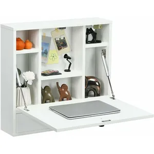 COSTWAY Bureau Mural Rabattable pour Ordinateur Portable avec Étagères Intégrée Tiroir Plateau Pliable 60 x 15 x 57 cm Blanc