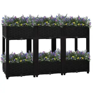 Ce lit surélevé est un excellent choix pour cultiver une variété de fleurs ou de plantes, ce qui en fait un excellent supplément à votre jardin. Cette jardinière, dotée de 2 étagères, est fabriquée en polypropylène, ce qui la rend robuste, résistante à l'usure et adaptée à une utilisation quotidienne à l’extérieur. Le pot de jardin est assez profond et large pour contenir une grande quantité de terre et offre suffisamment d’espace pour vos plantes, légumes, herbes et fleurs. Créez une belle toile de fond pour vos plantes avec ce lit de plantation élégant ! Couleur : noir Matériau : polypropylène Dimensions : 120 x 40 x 71 cm (L x l x H) Hauteur intérieure : 15 cm L'assemblage est requis