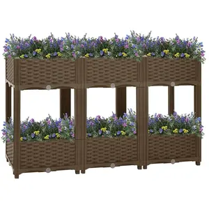 Ce lit surélevé sera un excellent choix pour les amateurs de bricolage pour décorer leurs jardins, balcons ou patios. Cette jardinière, dotée de 2 étagères, est fabriquée en polypropylène, ce qui la rend robuste, résistante à l'usure et adaptée à une utilisation quotidienne à l’extérieur. Le pot de jardin est assez profond et large pour contenir une grande quantité de terre et offre suffisamment d’espace pour vos plantes, légumes, herbes et fleurs. Créez une belle toile de fond pour vos plantes avec ce lit de plantation élégant ! Couleur : marron Matériau : polypropylène Dimensions : 120 x 40 x 71 cm (L x l x H) L'assemblage est requis
