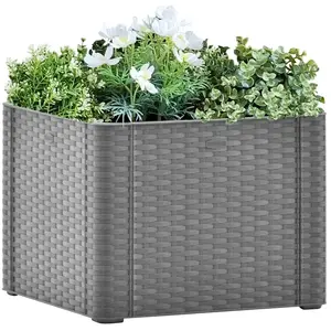Affichez magnifiquement vos fleurs ou plantes préférées avec ce lit surélevé élégant et fonctionnel ! Cette jardinière, fabriquée en PP (polypropylène) robuste résistant aux UV, aux intempéries et au gel, convient à une utilisation à l'intérieur et à l'extérieur. Le design ressemble à une vraie structure en rotin. Cette boîte à fleurs peut accueillir un grand nombre de plantes et de fleurs vertes. De plus, le lit de plantation est doté d’un système d’arrosage automatique et d’un indicateur de niveau pour prévenir l’excès d’eau. Couleur : gris pierre Matériau : polypropylène Dimensions : 43 x 43 x 33 cm (l x P x H) Contenance : 35 L Convient à une utilisation en plein air et à l'intérieur Avec un système d’arrosage automatique et un indicateur de niveau Design à l'aspect du rotin Résistance aux UV, aux intempéries et au gel L'assemblage est requis