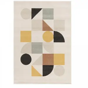 tapis salon 200x290 tissé beige et jaune rectangle motif géométrique CONTEMULTI