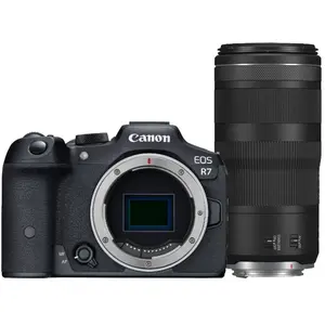 Canon EOS R7 + RF 100-400mm F/5.6-8 IS USM De Canon EOS R7 is een snelle APS-C systeemcamera voor de veeleisende hobbyist. In combinatie met de Canon RF 100-400mm beschik je over een bundel waarmee je eenvoudig onderwerpen op afstand vast kunt leggen. Canon EOS R7 body De Canon EOS R7 is een snelle APS-C systeemcamera voor de veeleisende hobbyist. De cropsensor met 32,5 megapixel staat garant voor haarscherpe foto's en adembenemende video's in 4K-resolutie. Of je nu wildlife gaat fotograferen, langs de sportvelden staat of multimediale content maakt, met de EOS R7 beschik je over een snelle maar compacte camera. Met een korte opstarttijd en burstsnelheden tot 30 fps vang je momenten die in een split-second gebeuren. Dankzij deep learning Dual Pixel CMOS AF II verloopt scherpstellen soepel en snel. Mensen, dieren en voertuigen worden met onderwerpherkenning moeiteloos gedetecteerd waardoor de scherpstelling er nooit meer naast hoeft te zitten. Bij mensen is er bovendien