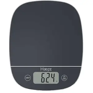 Haepi momenten in de keuken: precisie, elegantie en duurzaamheid binnen handbereik Ontdek onze Haepi keukenweegschaal: een tool die zowel krachtig als duurzaam is. De ongeëvenaarde precisie stelt u in staat om tot 5000g te wegen met een nauwkeurigheid van 1g. Geen benaderingen met Haepi: krijg elke keer nauwkeurige metingen. Het is multifunctioneel en geschikt voor al uw behoeften, of het nu gaat om vaste voedingsmiddelen, kruiden of vloeistoffen. En na gebruik? Een eenvoudige veeg met een vochtige doek is voldoende om het schoon te maken. De TARE-functie stelt u in staat de weegschaal op nul te zetten, wat het opeenvolgend wegen van ingrediënten vergemakkelijkt. Voor liefhebbers van vloeibare recepten garandeert onze speciale functie elke keer juiste metingen. Wat design betreft, biedt het brede scherm van Haepi een gemakkelijke leesbaarheid met duidelijk zichtbare cijfers. De moderne Blueberry-tint esthetiek past perfect in elke keuken. We zijn zo overtuigd van de kwaliteit dat we een garantie van 15 jaar bieden. En om direct te beginnen, zijn de batterijen inbegrepen. Voor nauwkeurig en zorgeloos koken, kies voor Haepi.