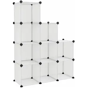 Cet ensemble de cubes de rangement polyvalent est destiné à utiliser au mieux l'espace limité et à satisfaire vos différents besoins de rangement. Matériau pratique : l'ensemble de rangement est fabriqué à partir de panneaux en plastique PP, qui sont imperméables et nécessitent peu d'entretien.Structure solide et stable : les cadres en acier garantissent la solidité et la stabilité.Design convivial : grâce à sa conception légère, l'étagère de rangement peut être assemblée à votre guise avec le marteau à bois inclus. Lorsqu'elle n'est pas utilisée, il est facile de séparer les panneaux et de les empiler pour gagner de la place.Grand espace de rangement : cette armoire en plastique contient 9 cubes modulaires. L'espace de rangement facilite l'organisation des articles.Applications étendues : avec un grand espace de rangement et un design simple, l'étagère de rangement est une excellente solution de rangement pour votre maison, dortoir et bureau. Remarque :La capacité de charge maximale de chaque cube est de 10 kg. Couleur : transparent Matériau : PP (Polypropylène), acier Dimensions totales : 94,5 x 31,5 x 124 cm (L x l x H) Dimensions de chaque panneau : 30 x 30 cm (L x l) Capacité de charge maximale de chaque cube : 10 kg Facile à nettoyer 9 cubes disponibles pour le rangement L'assemblage est requis La livraison contient : 34 x panneau 36 x connecteur 1 x marteau à bois 1 x manuel d'instructions