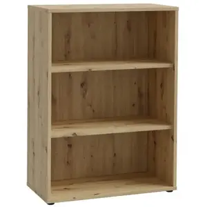 Découvrez la bibliothèque 3 niveaux MANOLO. Conçue pour accueillir vos classeurs trieurs dossiers livres ou tout autre élément de décoration létagère 3 cases MANOLO est une valeur sure pour vos rangements. Simple et compacte elle se compose de 2 étagères réglables afin de sadapter au mieux à vos besoins. Son décor bois de chêne rustique apportera une touche naturelle à votre intérieur.