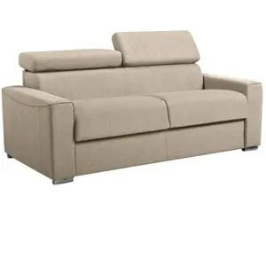 Vente-unique-Canapé 3 places convertible express en tissu beige - couchage 140 cm - Matelas 22 cm avec mémoire de forme VIZIR