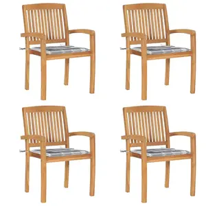 vidaXL - Tuinstoelen - stapelbaar - 4 - st - met - kussens - massief - teakhout