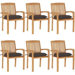 vidaXL - Tuinstoelen - stapelbaar - 6 - st - met - kussens - massief - teakhout