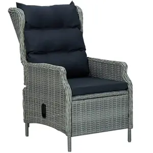 vidaXL - Tuinstoel - verstelbaar - met - kussens - poly - rattan - lichtgrijs