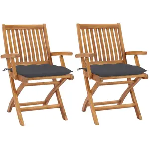vidaXL Chaises de jardin lot de 2 et coussins anthracite Bois de teck