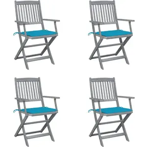 vidaXL Chaises pliables d'extérieur lot de 4 et coussins Bois d'acacia