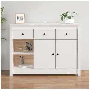 Ce buffet en bois pratique est destiné à satisfaire vos différentes exigences de rangement et est un complément idéal à votre pièce. Bois de pin massif : le bois de pin massif est un matériau naturel magnifique. Le bois de pin a un grain droit et les n¿uds donnent au matériau son aspect caractéristique et rustique. Ce buffet est fabriqué en bois massif pour plus de stabilité. Grand espace de rangement : l'armoire de rangement a 3 tiroirs et 6 compartiments, offrant suffisamment d'espace pour que vous puissiez garder les choses organisées et à portée de main. Dessus robuste : vous pouvez également placer vos photos, décorations et même fleurs préférées sur le dessus de l'armoire pour enrichir votre pièce. Armoire multifonctionnelle : cette armoire latérale minimaliste peut être utilisée dans n'importe quelle pièce. Vous pouvez l'utiliser dans votre bureau ou chambre d'étude pour organiser des documents et des livres dans votre salon ou chambre à coucher pour ranger des articles ménagers. Avertissement :Afin d'éviter qu'il ne bascule, ce produit doit être utilisé avec le dispositif de fixation murale fourni. Remarque :Chaque produit est livré avec un manuel de montage dans la boîte pour un montage facile. Couleur : blanc Matériau : bois de pin massif Dimensions : 100 x 35 x 74 cm (l x P x H)Legal Documents:Vous trouverez ici plus de détails sur la façon d'empêcher vos meubles de basculer En-tête / Fabricant=vidaXL;Mobilier / Emplacement=Séjour salon;Mobilier / Type=Buffet;Matière dominante=Pin;Type de Produit=Meuble de rangement;Perception sensorielle / Coloris (générique)=Blanc;Tranche de poids=250 à 500 g;Titre=vidaXL Buffet Blanc 100x35x74 cm Bois massif de pin