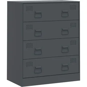 Ce buffet robuste est conçu pour être un point de mire de votre pièce avec un design tendance mais pratique. Matériau stable : Le cadre du buffet est en acier laminé à froid. L'acier laminé à froid est un type d'acier à faible teneur en carbone produit par une méthode de « laminage à froid » et traité à des températures ambiantes proches de la normale. L'acier laminé à froid présente une surface plus lisse, une plus grande résistance et une plus grande précision.Grand espace de rangement : ce buffet offre un espace de rangement pratique pour garder vos magazines, livres, télécommandes et autres petits objets bien organisés et à portée de main.Facile à entretenir : la table est facile à nettoyer à l'aide d'un chiffon humide et nécessite peu d'entretien.Poignée pratique : le buffet est livré avec 8 poignées qui facilitent l'ouverture et la fermeture de l’armoire tout en ajoutant une beauté supplémentaire. Attention :Pour éviter qu'il ne bascule, ce produit doit être utilisé avec le dispositif de fixation murale (non fourni). Couleur : anthracite Matériau : acier laminé à froid Dimensions : 67 x 39 x 83 cm (l x P x H) Capacité de charge maximale : 50 kg Avec 4 tiroirs Avec 8 poignées en métal Assemblage requis : oui Legal Documents: Vous trouverez ici plus de détails sur la façon d'empêcher vos meubles de basculer
