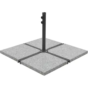 Notre plaque de poids solide pour parasol offre une base ferme et robuste pour tenir votre parasol et l'empêcher de basculer ou d'être emporté par le vent. Fabriqué en granit solide et d'un poids de 25 kg, ce poids de base est extrêmement stable et assure l'immobilité de votre parasol lors des journées venteuses. Veuillez noter qu'il ne s'agit que d'un quart d'une plaque de poids complète. Nous vous recommandons d'acheter 4 pièces pour obtenir un ensemble complet. Couleur : gris Matériau : granit Dimensions de la base : 47 x 47 x 4,5 cm (L x l x H) Poids : 25 kg (avec une tolérance de +/- 5 %) La livraison comprend 1 pièce de plaque carrée