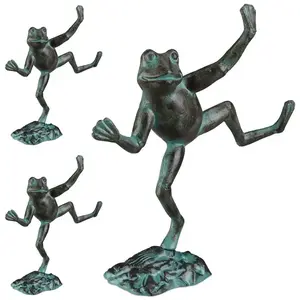 Zorg met dierenfiguur voor een levendige flair in je tuin. Of hij nu in een bloemenperk, naast de vijver of op het balkon staat - de decoratie kikker is overal een echte blikvanger. Bovendien staat de kikker in een grappige houding op de sokkel en bezorgt je door zijn brede lach zeker een goed humeur. Geef de kikker tuindecoratie ook aan de kikkerliefhebbers onder je vrienden en familie cadeau. Dankzij de poedercoating en de zware kwaliteit van het gietijzer houdt de kikker jaren lang door weer en wind buiten stand. Beeld kikker set van 3 in detail - Materiaal: Gietijzer - Kleur: Groen Maat L - Afmeting H x B x D: ca. 33 x 31 x 9,5 cm - Gewicht: ca. 1,9 kg Groene decoratie kikker voor binnen en buiten - Geweldige decoratie voor in de tuin, op het terras of balkon - Kikker figuur zorgt met zijn brede lach voor een goed humeur - Het tuinbeeld kan het hele jaar buiten blijven staan - Weerbestendig materiaal voor lange levensduur - Perfect cadeau-idee voor kikkerfans van alle leeftijden - Afhankelijk van het gekozen model moet er nog een sokkel aan worden vastgeschroefd Leveromvang - 3x Tuinbeeld kikker in losse onderdelen - Decoratie is bij de levering niet inbegrepen