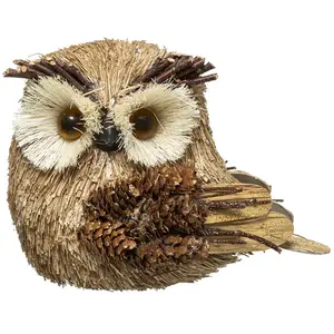 Hibou Pomme de Pin Glacé 15cm Naturel
