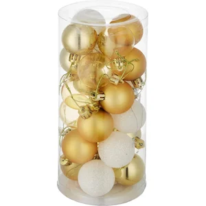 tectake® Set van 24 Kerstballen - Mat, Glanzend en Glinsterend Oppervlak - Kerstballen van Robuust Plastic - Kerstversiering met Opbergbox - Kerstboomversiering - 4 cm - Wit/Goud