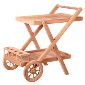 Desserte en teck. Combinant parfaitement le côté pratique et le côté esthétique cette jolie desserte peut vous servir de meuble dappoint de jardin de plan de travail ou même de rangement pour pouvoir y mettre vos ustensiles de cuisine par exemple. Grâce à ses deux roues elle est facilement manipulable. Ses emplacements pour bouteilles permettront de bien les maintenir en place même lorsque vous déplacerez votre