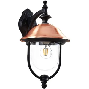 Lindby - Wandlamp buiten - 1licht - Aluminium, koper, kunststof - H: 44 cm - E27 - zwart, koper, transparant