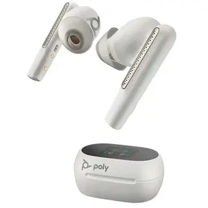 Casque hi-fi HP Poly Voyager Free 60+ UC M - Écouteurs sans fil avec micro - intra-auriculaire - Bluetooth - Suppresseur de bruit actif - USB-C via un adaptateur Bluetooth - blanc sable - Certifié pour Microsoft Teams