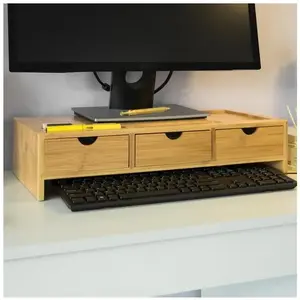 SoBuy BBF03-N Monitorstandaard Bureau-organizer met 3 Laden - Bamboe - 51x12x25cm