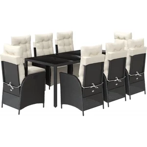 vidaXL Vidaxl Ensemble À Manger De Jardin 9pcs Coussins Noir Résine Tressée