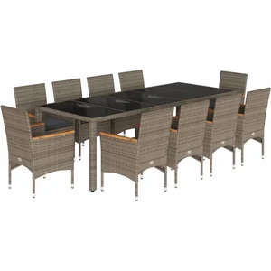 vidaXL Vidaxl Ensemble À Manger De Jardin Et Coussins 11 Pcs Gris Rotin Verre