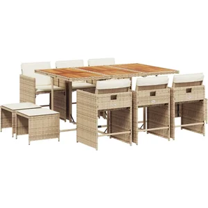vidaXL - 11-delige - Tuinset - met - kussens - poly - rattan - beige
