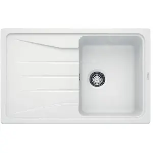 Sona 45 S spoelbak kleur wit materiaal SILGRANIT® PuraDur® geschikt voor opbouw dubbelzijdige uitvoering met overloop enkelvoudige spoelbak met afdruipgedeelte zonder excentrische bediening van de waste minimale kastbreedte 450 mm totale afmetingen 780 × 500 mm afmetingen spoelbak 335 × 420 mm diepte spoelbak 190 mm diameter afvoer 3 1/2" installatie van afvalvermaler mogelijk inclusief afvoergarnituur met ruimtebesparende buis en 3 1/2’’ korfplug