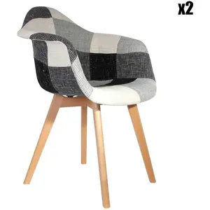 Lot de 2 fauteuils HOME DECO FACTORY au design épuré en patchwork gris et blanc offrant une assise confortable. Dimensions : H83.5 x L62 x P60.5 cm.