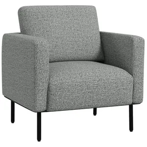 Homcom Fauteuil Style Contemporain Métal Noir Tissu Toucher Lin Gris Chiné