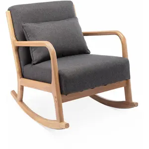 SWEEEK Fauteuil à bascule design en bois et tissu. 1 place. rocking chair scandinave. gris foncé