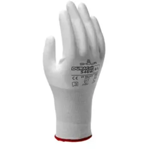 Gants de protection SHOWA 546W, L Le gant de protection contre les coupures (niveau de protection C) est fabriqué en tissu porteur DURACoil renforcé en HPPE avec un revêtement en polyester multifilament et un poignet tricoté élastique. Le revêtement en mousse de polyuréthane renforcé sur la paume offre une grande résistance à l'abrasion, une bonne sécurité de préhension et une ventilation. Ce gant polyvalent, avec une résistance aux coupures durable, est adapté aux travaux de précision. CE Catégorie II EN 388:2016 4X42C.