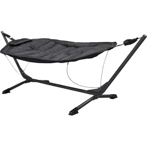 Hamac sur pied - Outsunny - support en acier - avec oreiller, barres d'écartement - pour camping en plein air, plage - gris foncé