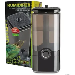 Augmente le taux d'humidit jusqu' 100 % d'humidit relative Simule les nuages bas, le brouillard ou la rose tt le matin S'teint automatiquement lorsque le niveau d'eau descend en dessous du minimum Idal pour une utilisation avec le thermostat et hygrostat Exo Terra Facile installer et rapprovisionner en eau