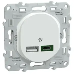 En-tête / Fabricant=Schneider;Type de Produit=Chargeur de batterie;Titre=Double chargeur USB A 7.5W + C 45W Schneider Electric Ovalis blanc;Peinture / Aspect=Mat;Couleur générique=Blanc